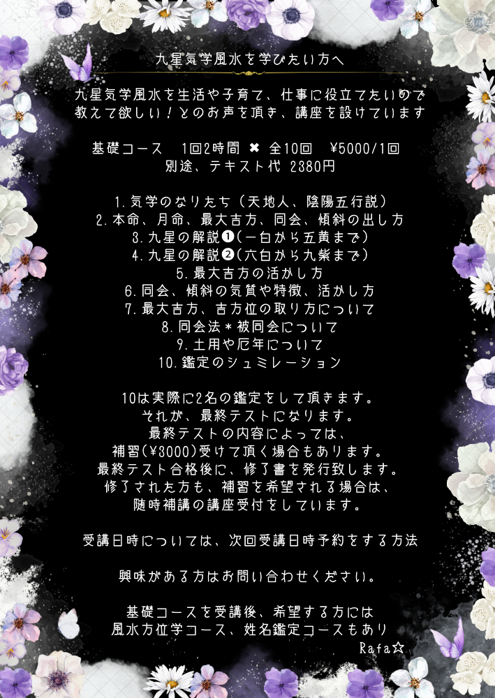 心身コース、風水方位学コース、姓名鑑定コースもあります。